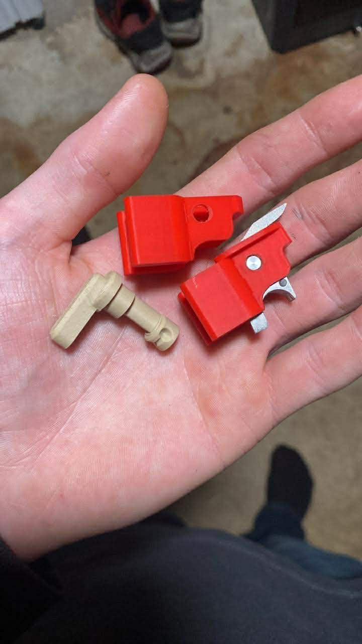 I’ve changed the way the lever interacts with the activator for less friction, cut off the two extra portions of the activator, and added 2 custom designed housings and spacers that should fit an m16 pocket for the fun of it.